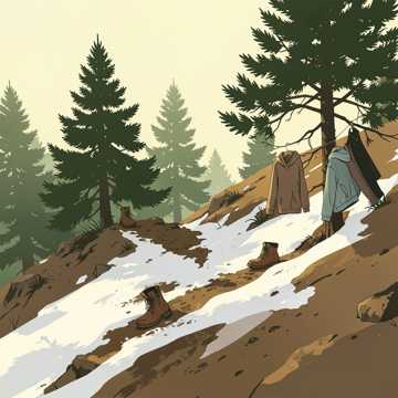Det er vår, snøen gjemmer seg i skyggen. Vi går stien med for tynne jakker,